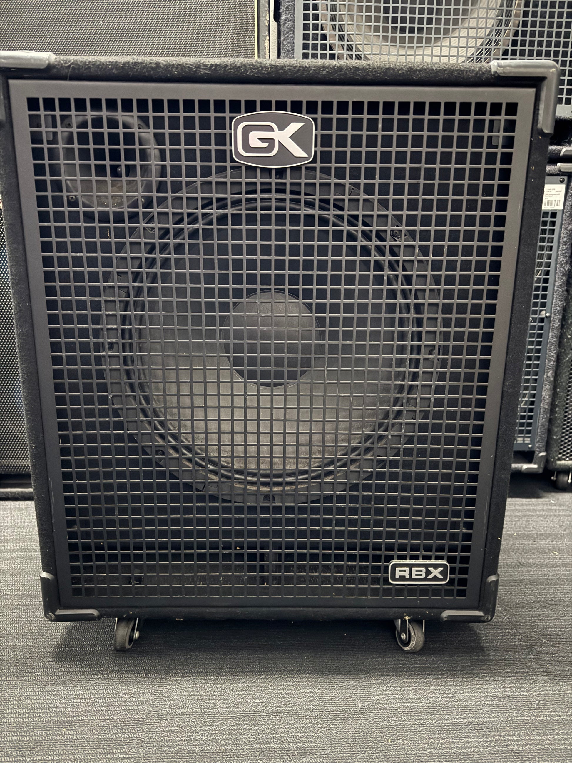 The Gallien-Krueger 115RBX is a robust 1x15" bass cabinet delivering 400 watts at 8 ohms. Featuring a cast-frame 15" woofer paired with a high-quality horn tweeter, it offers a frequency response from 50Hz to 19kHz and a sensitivity of 101dB. Its front-ported design ensures tight, punchy lows, making it ideal for genres like rock, blues, and country. Constructed with 11-ply poplar, the cabinet includes recessed spring-loaded handles, interlocking corners, and removable casters for durability and ease of transport. Connectivity is versatile with both 1/4" and Speakon inputs. Weighing approximately 70.5 lbs (32 kg), it's a reliable choice for bassists seeking classic GK tone in a gig-ready package.
